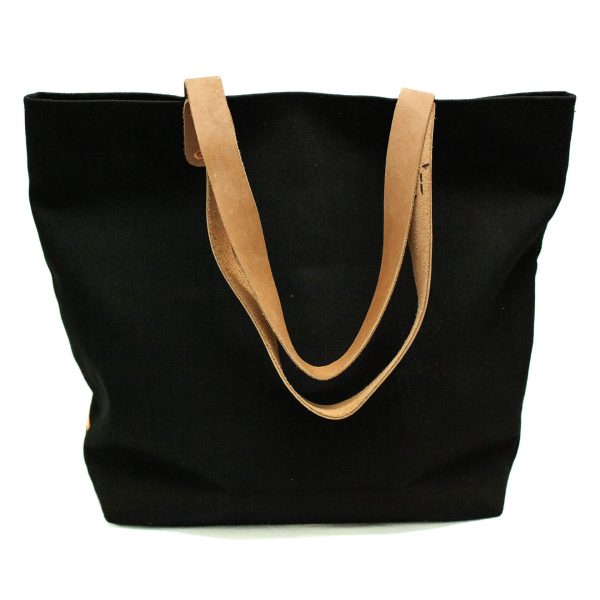 Black canvas Mkoba Tote with Multi color horizontally centered beadwork