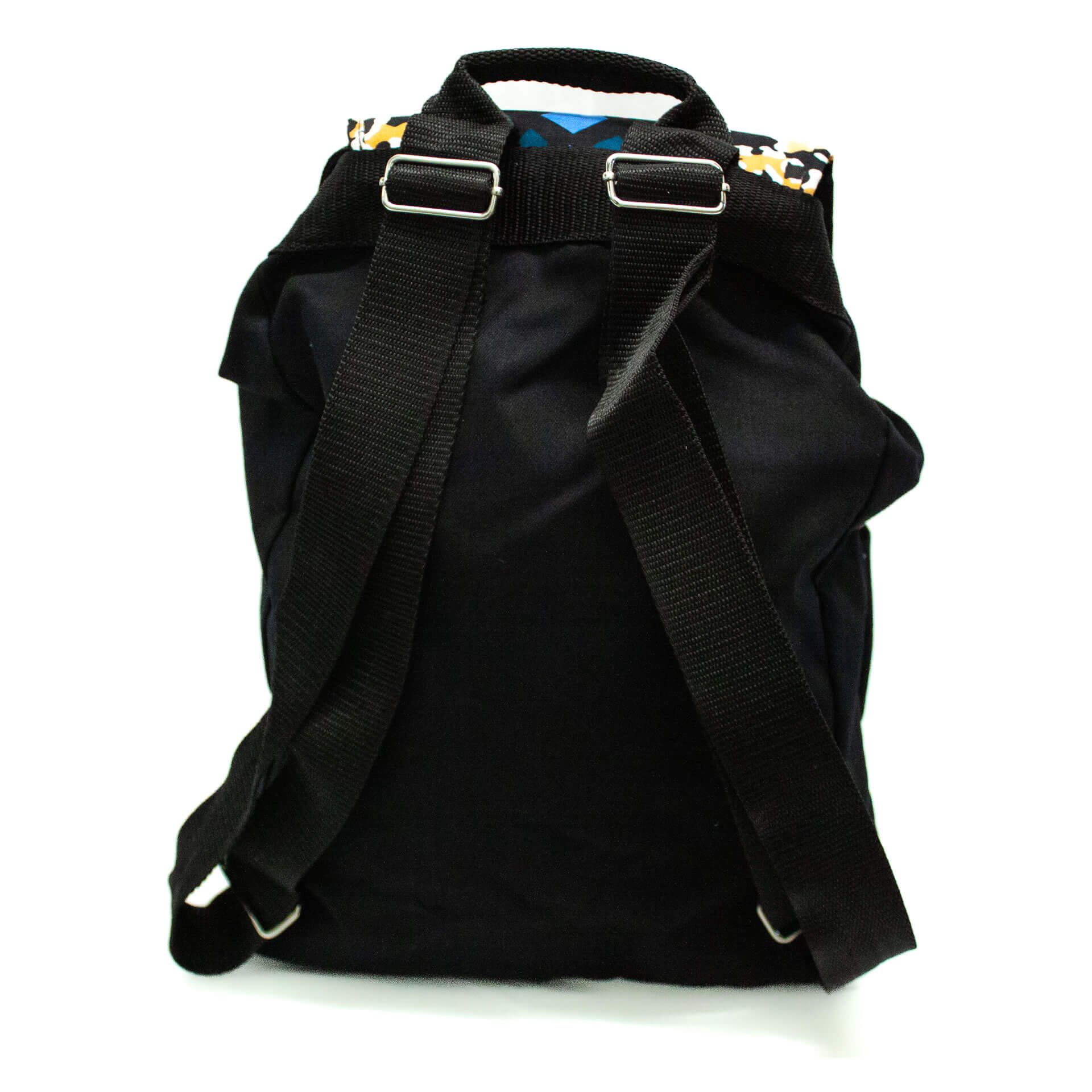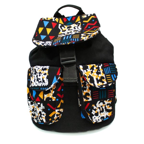 Assorted Colors of African textile and ankara print backpacks. Contains two front pockets with a magnetic closure. A side release buckle clip & draw string closure to secure contents in the bag. Bonus inside zipper pocket.