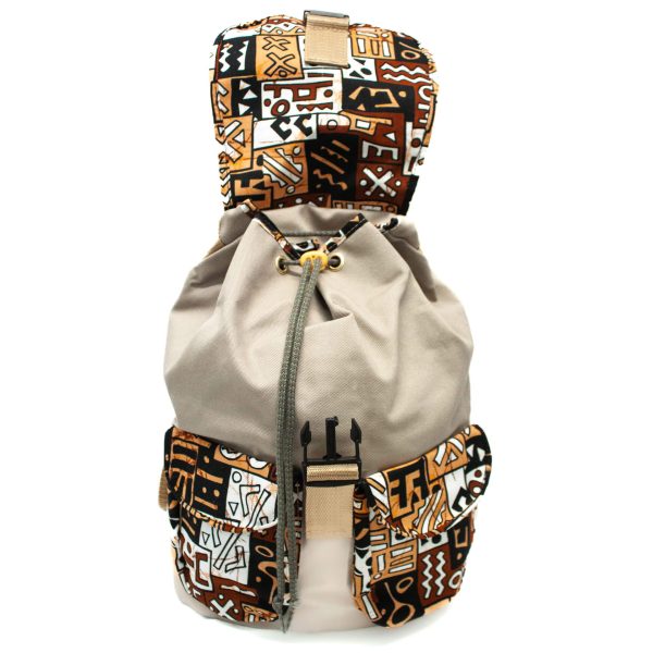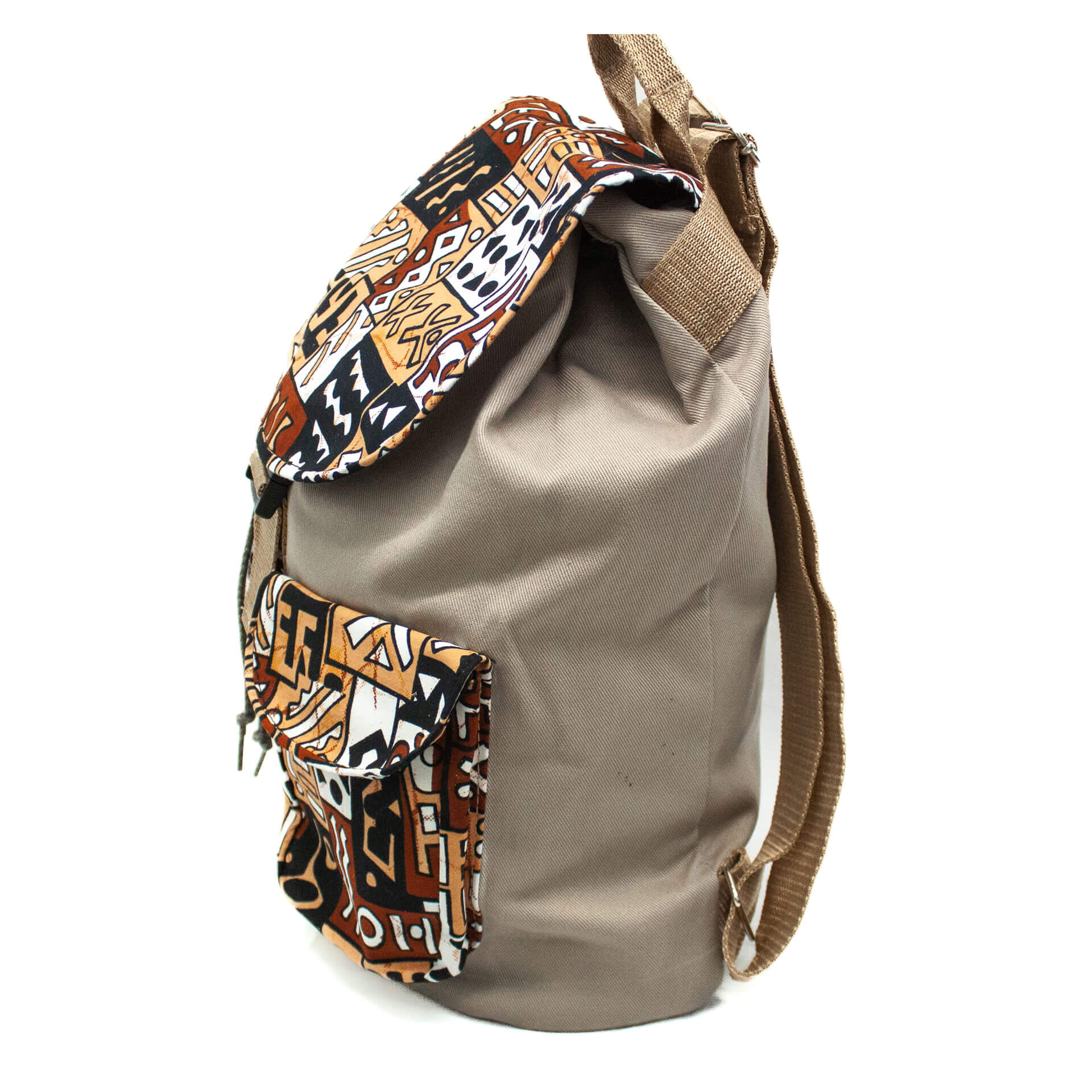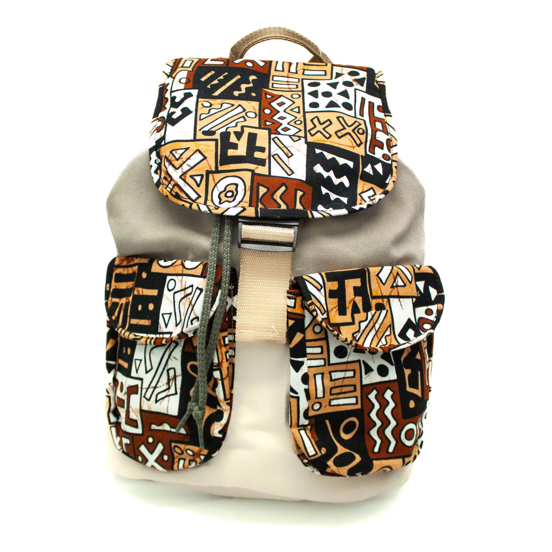 Assorted Colors of African textile and ankara print backpacks. Contains two front pockets with a magnetic closure. A side release buckle clip & draw string closure to secure contents in the bag. Bonus inside zipper pocket.