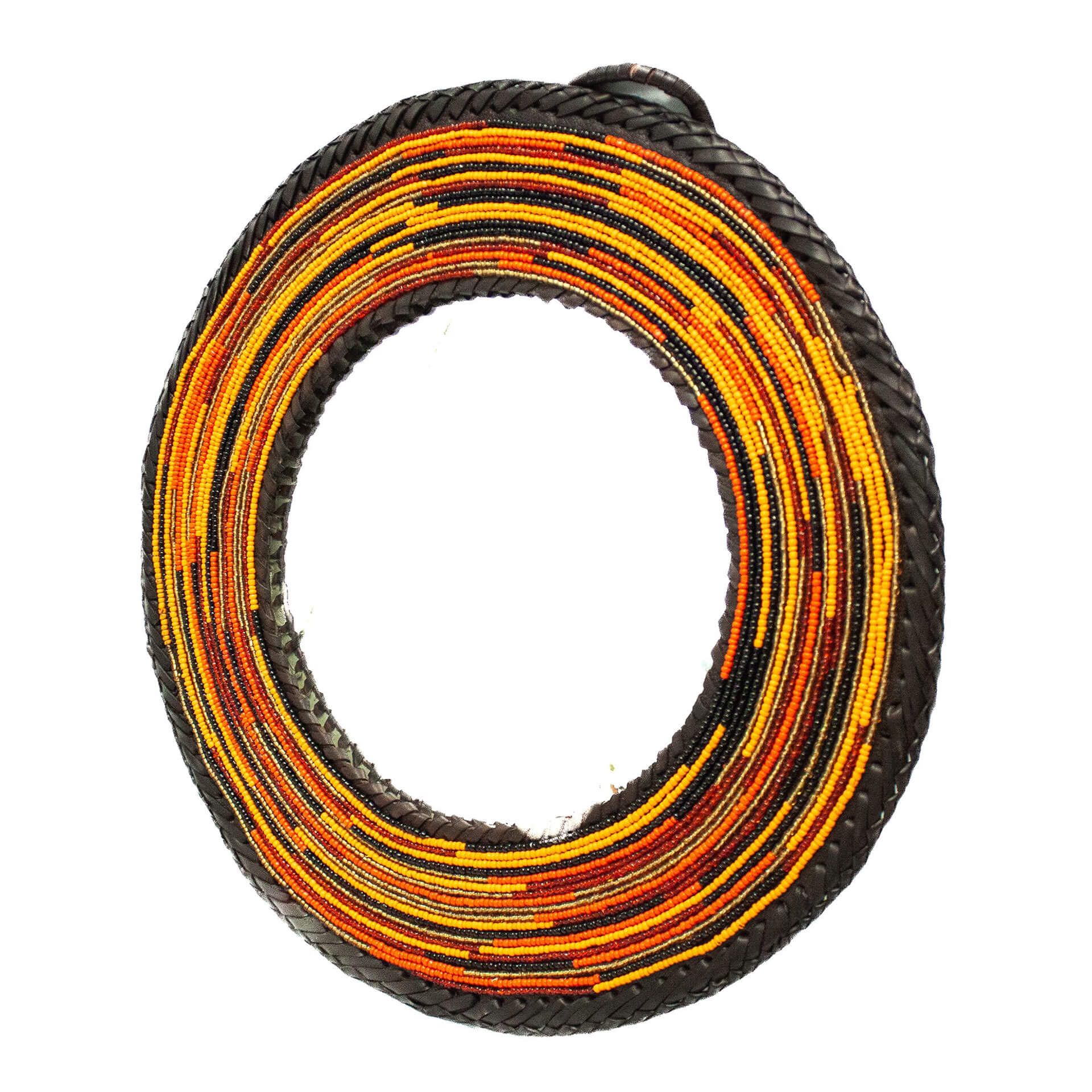 Orange, Red & Yellow African Round, Hand-Beaded Mirror