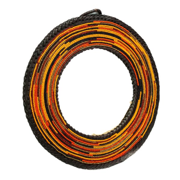 Be the first to review “Orange, Red & Yellow African Round, Hand-Beaded Mirror”